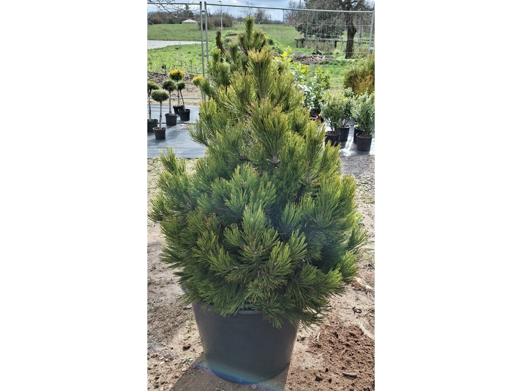 Jehličí : husté, tuhé, pichlavé, tmavě zelené a lesklé, 6 až 8 cm dlouhé. Šišky 6-8 cm dlouhé, velmi tmavé.