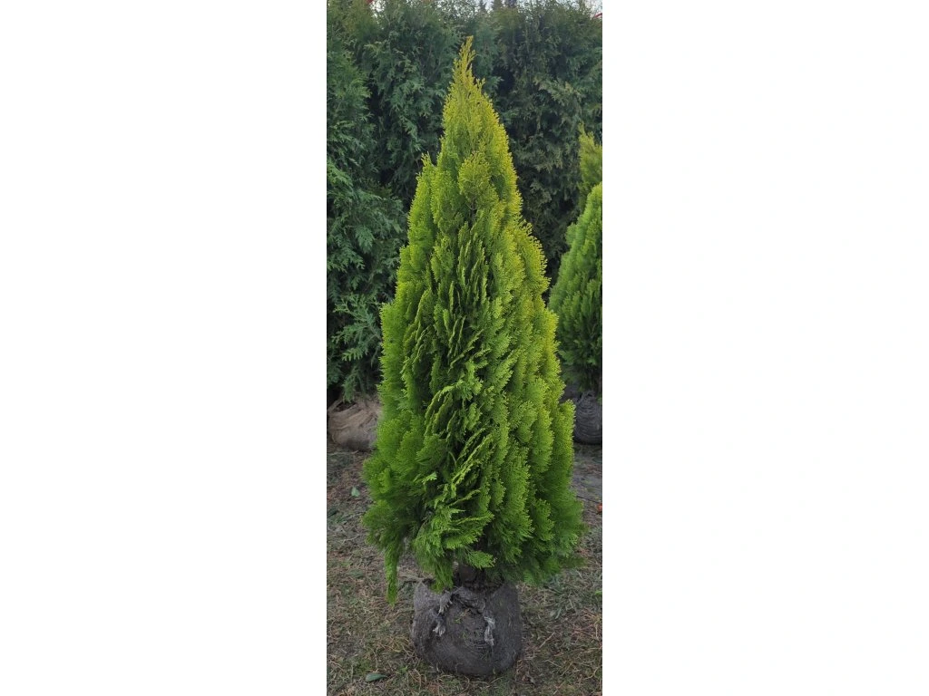 Tento kultivar zeravu (túje) je vyhledávaný pro svůj hustý růst a proměnlivé zbarvení – od jarní jasně žluté až po zimní bronzové tóny. Rostliny dodáváme s poctivým zemním balem, což je tradiční a velmi spolehlivý způsob expedice, který chrání kořenový systém a usnadňuje zakořenění na novém stanovišti.